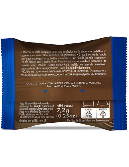 Confezione da 100 capsule A Modo Mio Miscela Blu Caffè Borbone. Compatibili Lavazza A Modo Mio, gusto equilibrato e cremoso.