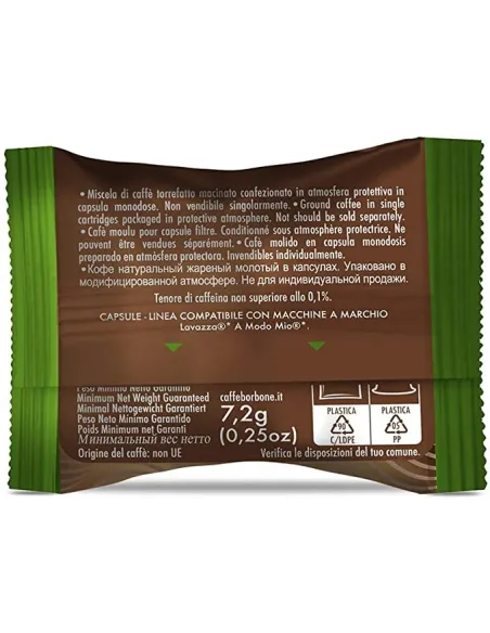 Confezione da 100 capsule A Modo Mio Miscela DEK Caffè Borbone. Decaffeinato delicato, compatibili Lavazza®.