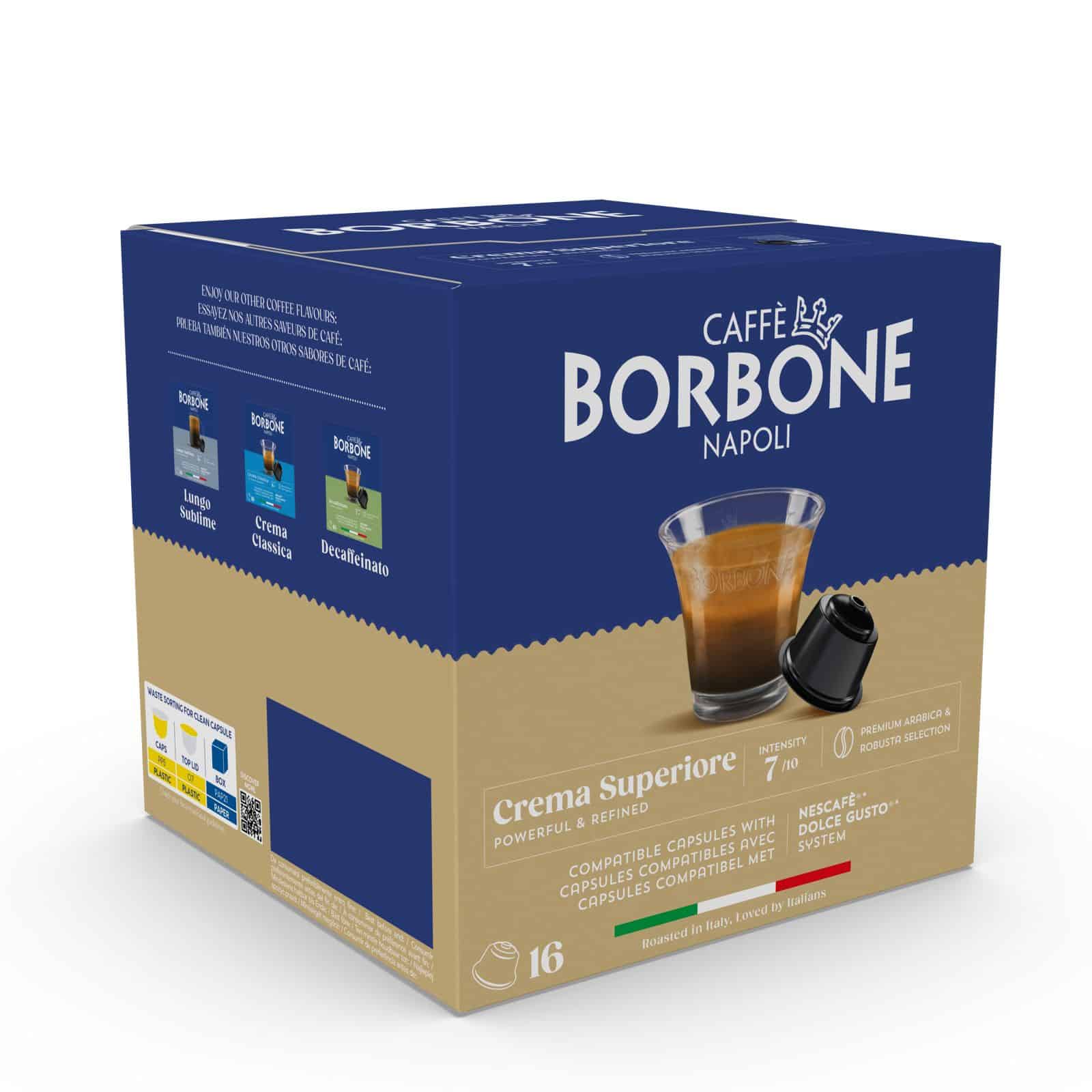 Confezione da 16 capsule Dolce Gusto Miscela CREMA SUPERIORE Caffè Borbone. L'autentico espresso napoletano, compatibili Nescafé®.