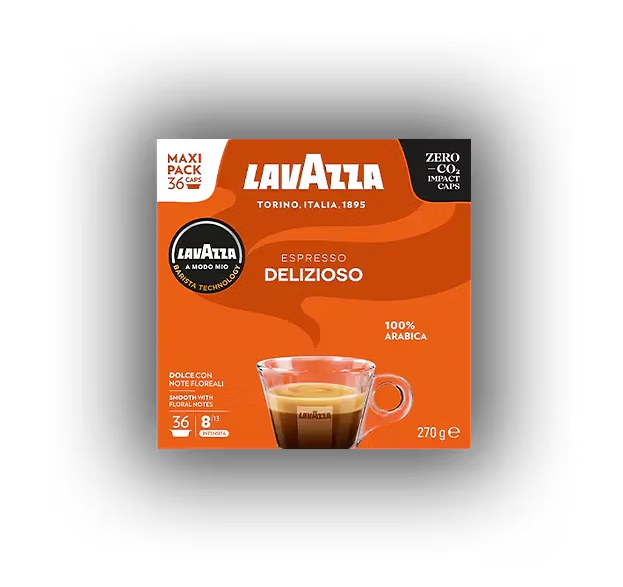 36 Capsule A Modo Mio DELIZIOSO Lavazza. Dolce e aromatico, con note floreali.